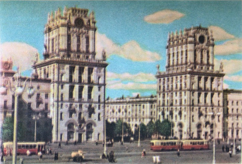 Свидетельством неустанных забот Коммунистической партии и Советского правительства о быте трудящихся является широкий размах жилищного строительства в Минске, его благоустройство. За послевоенные годы жилищный фонд города значительно вырос и превосходит довоенный уровень. Здесь появились новые площади и десятки улиц, парки и скверы, выросли благоустроенные жилые дома и рабочие поселки. Только в 1956 году на жилищное и культурное строительство Минска ассигновано 343 миллиона рублей, в том числе на жилищное строительство – 206 миллионов рублей. В 1956 году в городе вводится в эксплуатацию 129 жилых домов общей площадью 144 тысячи квадратных метров.